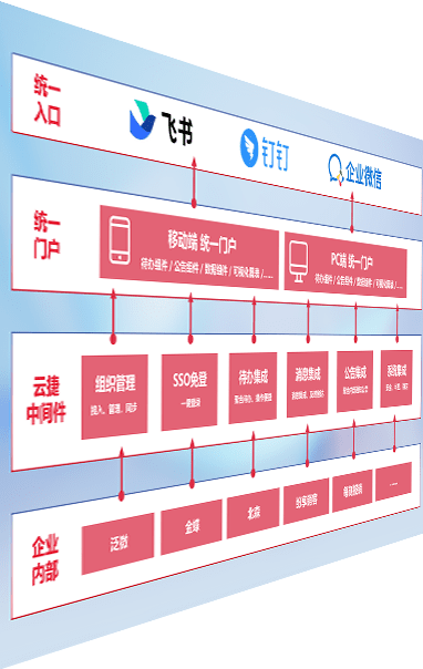 对协作平台提供支持服务,,支持企业应用与协作平台对接,,,,包含组织同步、、、、消息集成、、、、待办集成等。。。。支持目前主流的协作平台:钉钉、、、企微和飞书。。